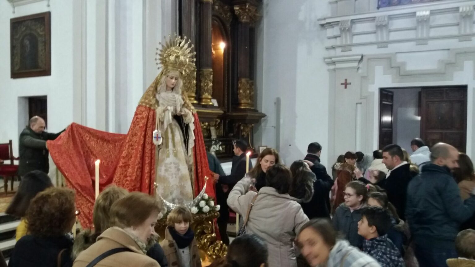 Con unas temperaturas que casi rozan los cero grados, la Cofradía de Nuestro Padre Jesús del Rescate ha celebrado esta mañana de domingo a las doce del mediodía la festividad de La Candelaria, presentando los niños, especialmente los bautizados el año pasado, a la Virgen de la Piedad en la Iglesia de la Trinidad de Antequera.