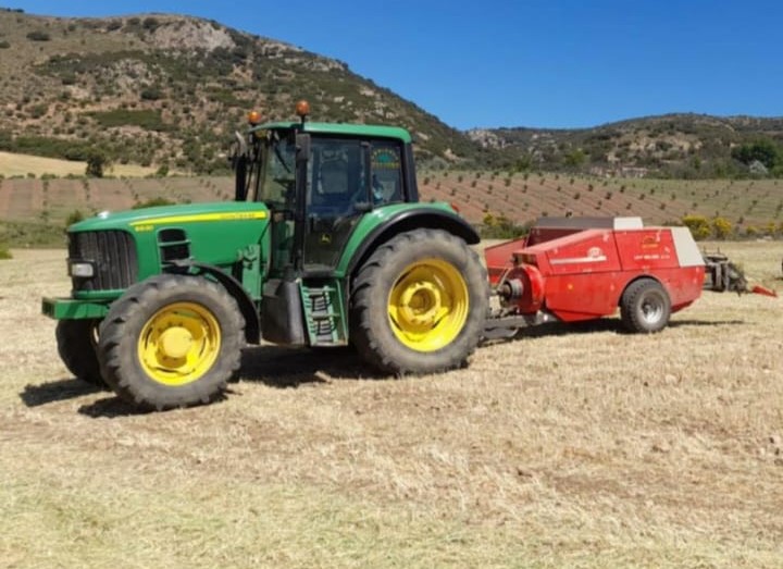 El hurto ya ha sido denunciado a la Policía Nacional. La familia pide máxima difusión y colaboración para encontrar el equipo que consta de un John Deere 6530 con matrícula E3387BFF y una empacadora de color rojo y blanco.