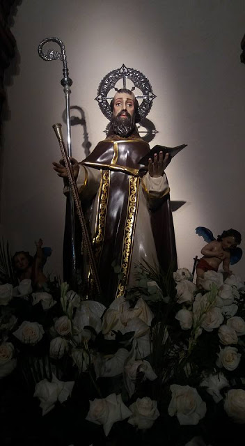 Rodeado de flores se encuentra San Antonio Abad, Patrón de Cuevas del Becerro