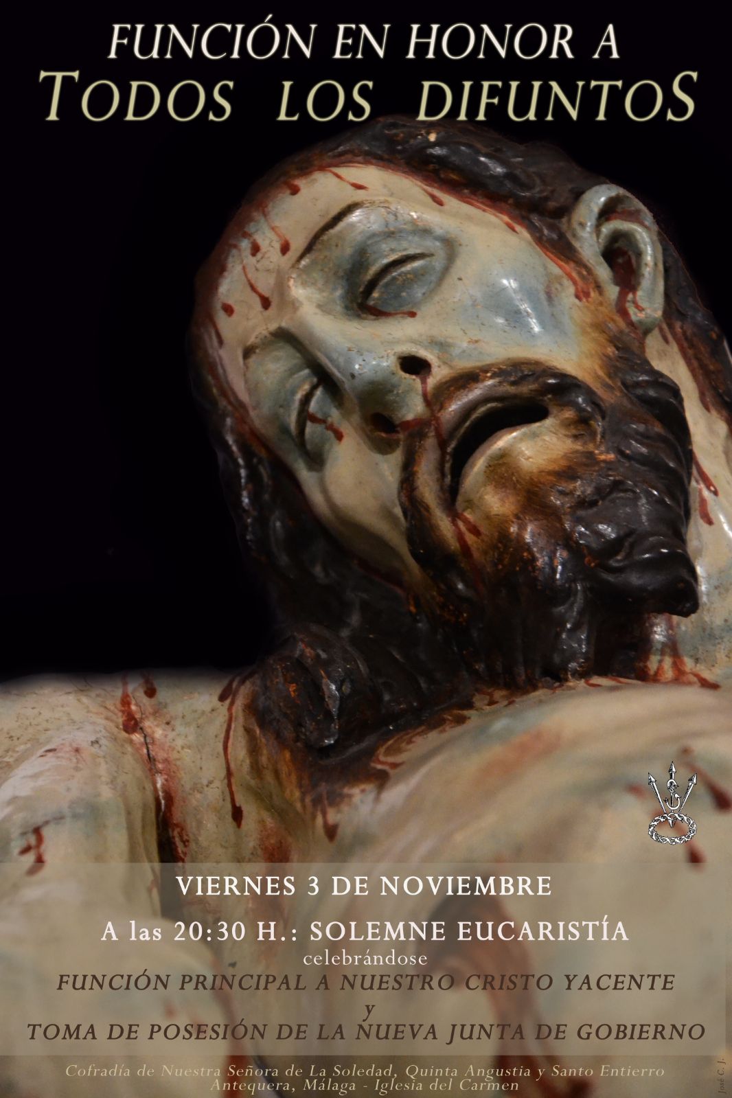 La Cofradía de Nuestra Señora de la Soledad, Quinta Angustia y Santo Entierro de Antequera celebra un año más al acercarse la fecha de los Fieles Difuntos la Solemnidad del Cristo Yacente y en memoria de los difuntos de la Hermandad.