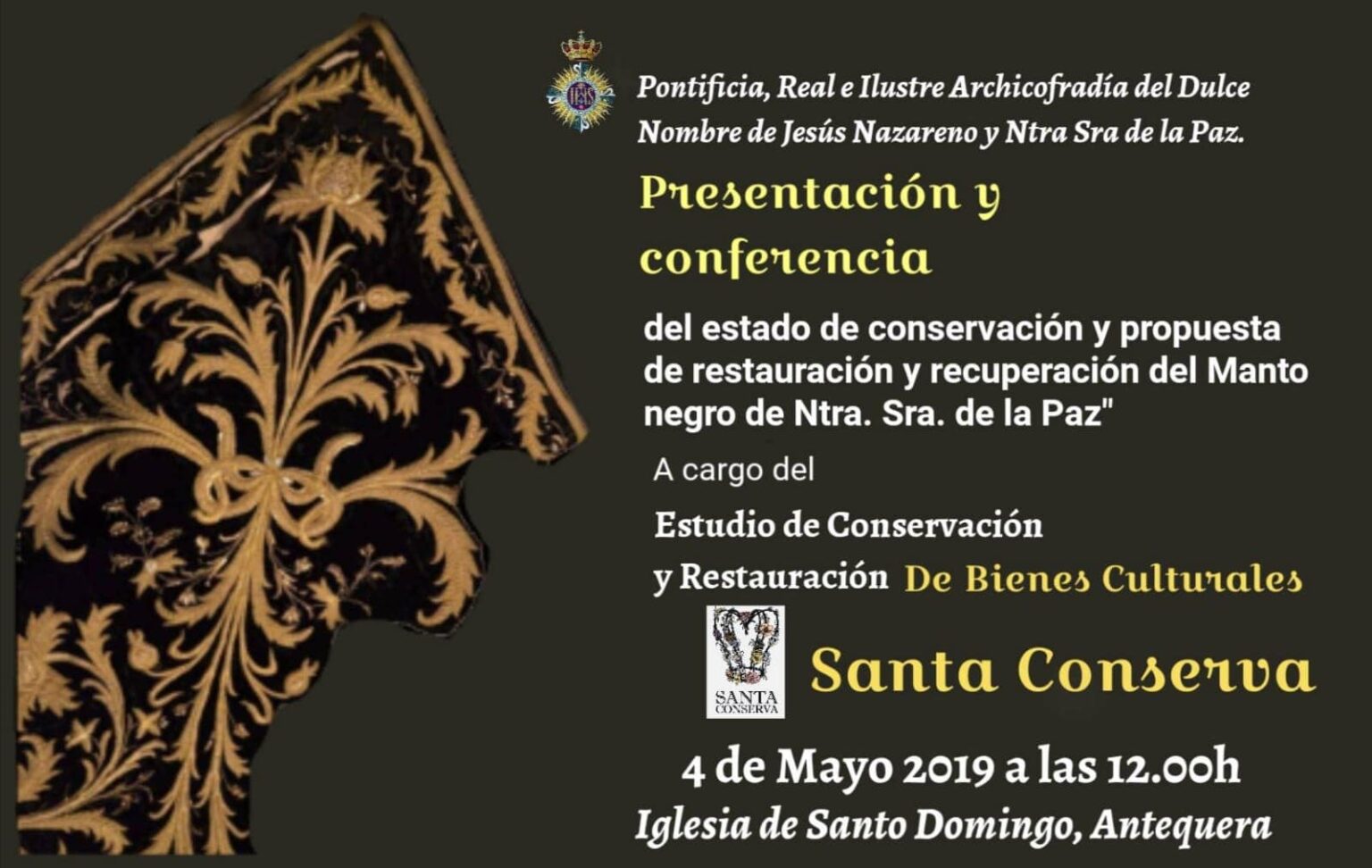 La Archicofradía de Abajo de Antequera organiza acto de presentación y conferencia sobre el estado de conservación y propuesta de restauración y recuperación del manto negro de Nuestra Señora de la Paz Coronada de Antequera.