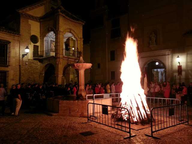 La plaza de Santiago se ha vestido de gala de cara a la medianoche para recibir el día de la festividad de Santa Eufemia, Patrona de Antequera. Una gran candela y un concierto de la flamante Banda de Cornetas y Tambores Amigos de la Música de Antequera se le han ofrecido a la Santa tras la oración de Lourdes Espinosa.