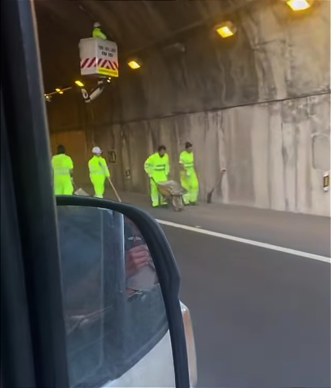 Los servicios de mantenimiento de la carretera están trabajando para reparar el techo dañado en el interior del túnel, lo que ha obligado a cortar el carril derecho de la autovía y a realizar cortes intermitentes en el carril izquierdo, lo que por momentos deja completamente parado el tráfico en la A-45.