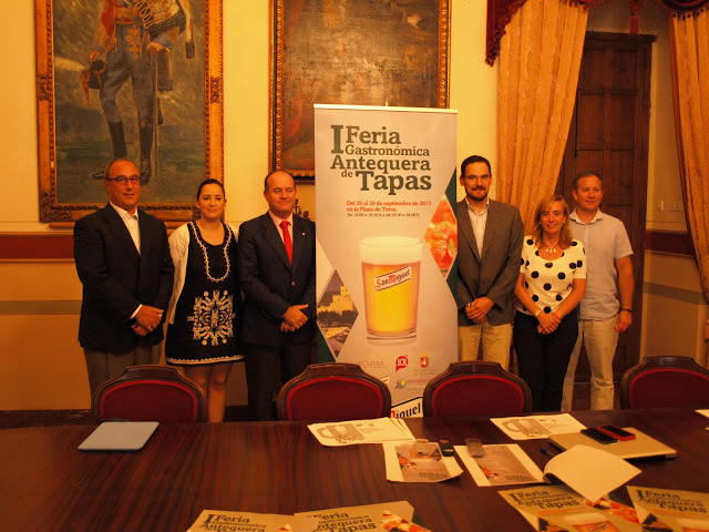 El Alcalde de Antequera, Manuel Barón, ha presentado esta mañana la primera Feria Gastronómica Antequera de Tapas, que se celebrará el fin de semana del 26, 27, 28 y 29 de septiembre en la plaza de toros de Antequera. Han acompañado al alcalde las concejales de Comercio, Belén Jiménez, y la de Cultura y Festejos, Ana Cebrián. En representación de la empresa Espectáculos Mundo, coorganizadora del evento, Jorge Gutiérrez y Antonio González y el Centro de Iniciativas Turísticas de la ciudad representado por Jorge Alegre.