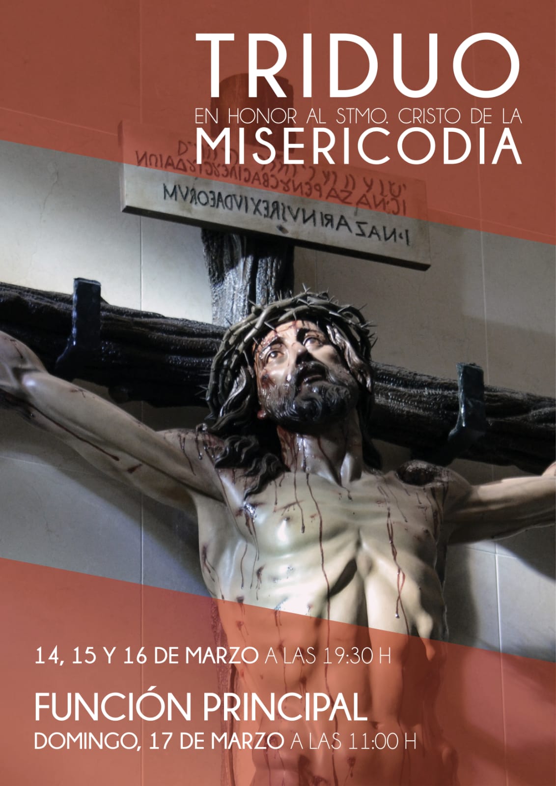 Este jueves 14, viernes 15 y sábado 16 de marzo a las 19:30h. se celebrará el Triduo en honor al Santísimo Cristo de la Misericordia de Cártama Estación.