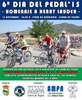 El 15 de noviembre de 2015 se celebrará en Sierra de Yeguas el ‘VI Día del Pedal‘ en homenaje a el fallecido Henry Lauder. El evento está organizado por el Ayuntamiento de Sierra de Yeguas, los A.M.P.A. Cerro de la Cruz y San Bartolomé y el Club Ciclista SerraBike MTB.