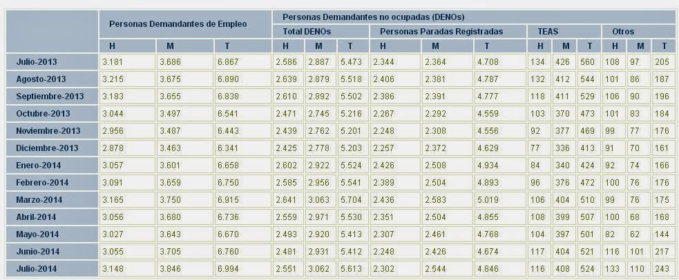 A pesar de las contrataciones temporales que se realizan en la época estival el desempleo aumenta. Del número de desempleados, por sexo las mujeres ocupan el primer lugar con 2.544 y los hombres contabilizan 2.302.