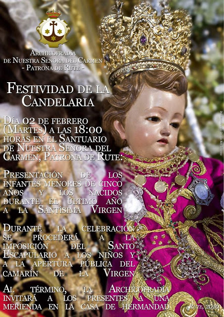 Martes 2 de Febrero, a partir de las 18.00 horas. Santuario de Nuestra Señora del Carmen, Rute (Córdoba)