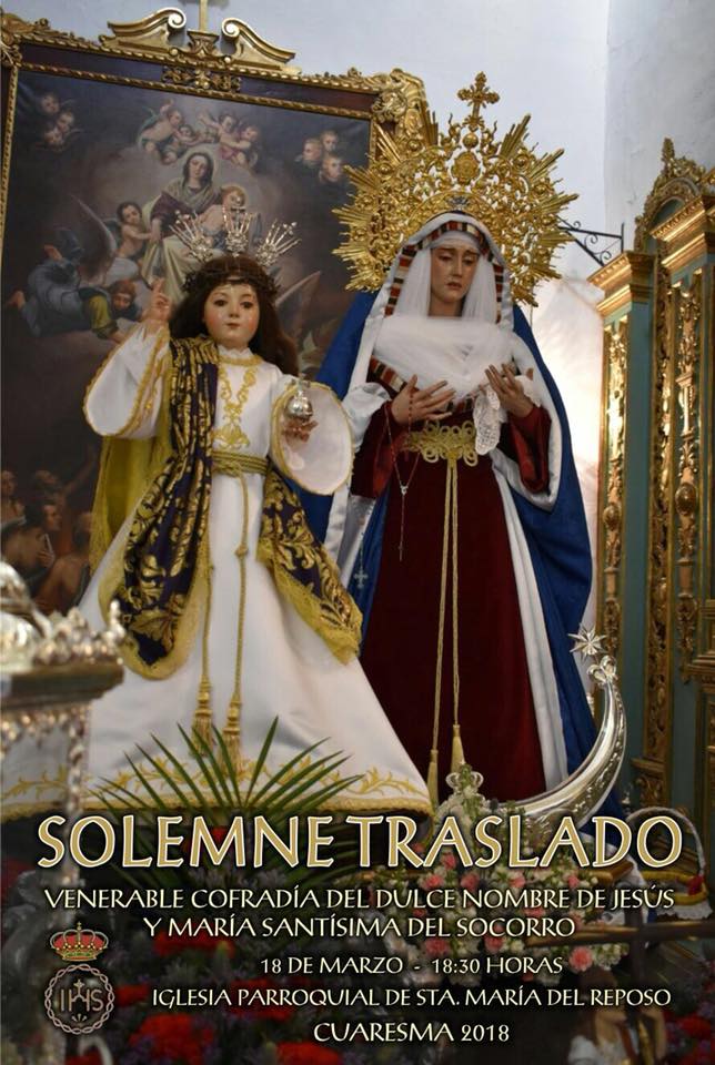 La Cofradía del Dulce Nombre de Jesús y María Santísima del Socorro de Campillos, organiza su solemne traslado desde la iglesia parroquial de Santa María del Reposo, el próximo domingo 18 de marzo a las 18.30 horas.