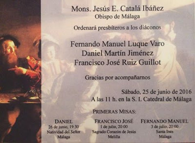 Tres seminaristas se ordenaran sacerdotes en la Diocesis de Málaga el próximo sábado 25 de Junio en la Catedral.