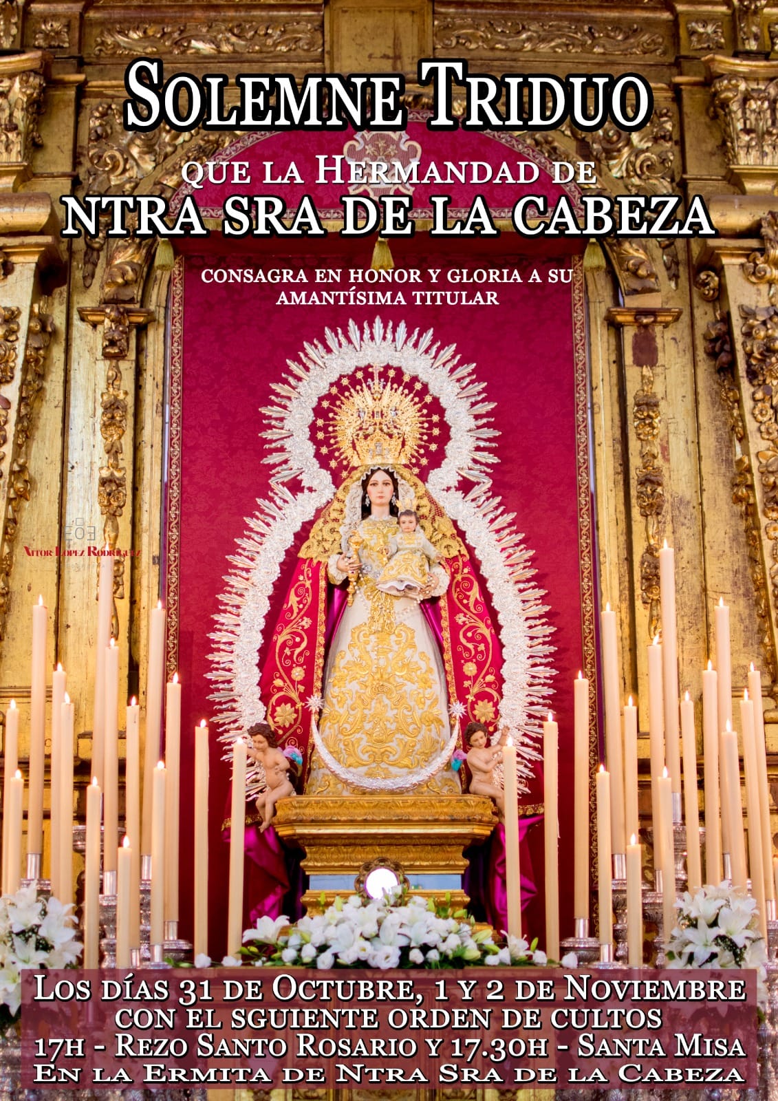 Los cultos tendrán lugar durante este miércoles 31 de Octubre, jueves 1 y viernes 2 de Noviembre, con Solemne Triduo en honor a la Virgen de la Cabeza.