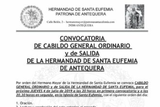 La Hermandad de Santa Eufemia de Antequera convoca Cabildo de Salida y Cuentas