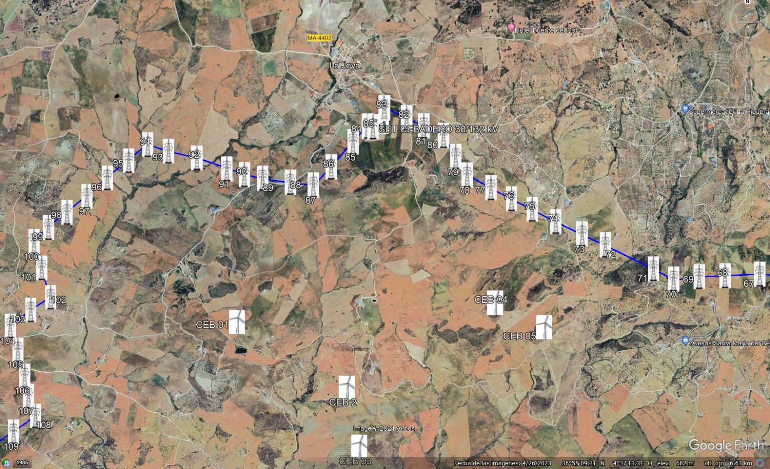 El proyecto Cebadera Wind se desarrollaría en el término municipal de Antequera, con 5 aerogeneradores y una potencia de 31 megavatios en los parajes La Alcubilla Lentisca y Molinillo.