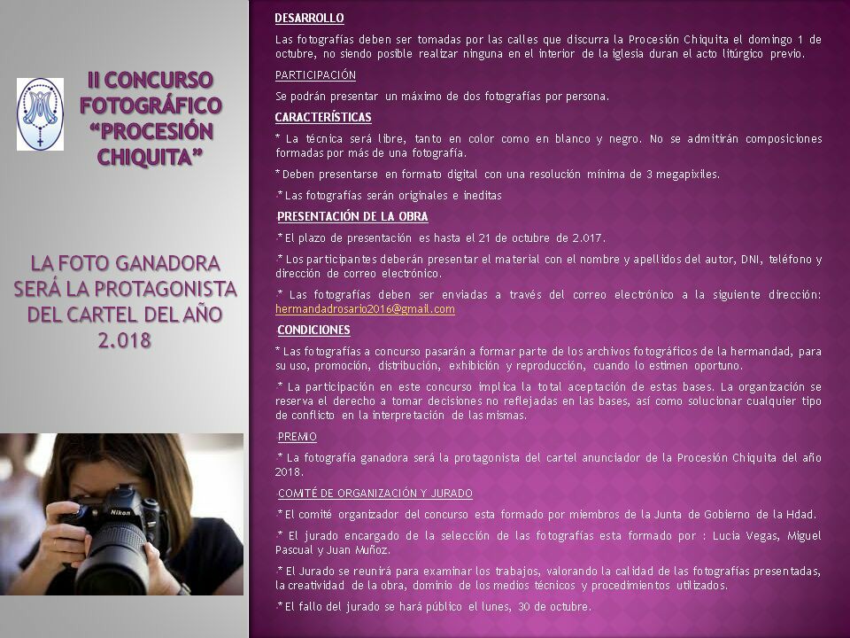 Las fotografías deben de enviarse al correo electrónico hermandadrosario2016@gmail.com