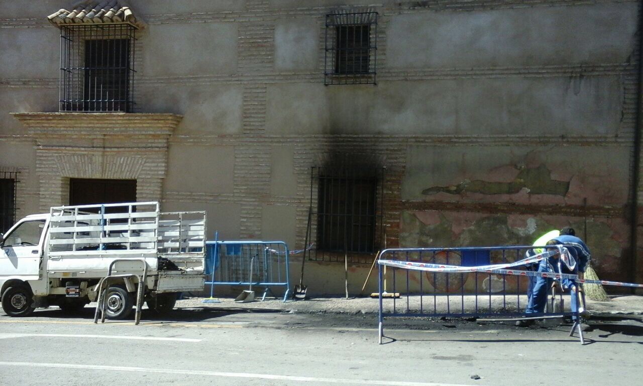 El suceso tuvo lugar sobre las cinco de la madrugada cuando el fuerte olor a humo y las altas llamaradas despertaron a los vecinos de la citada calle en las proximidades del cerro de San Joaquín, en el entorno de la Cruz Blanca.
