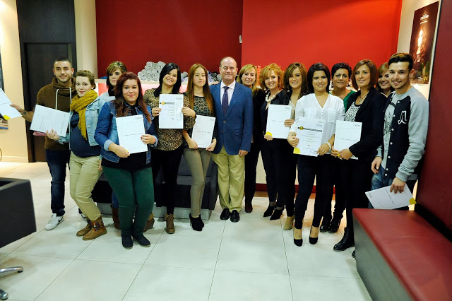 Un total de 12 alumnos recibieron de manos de Barón y de Jiménez los certificados expedidos por Habia que los acreditan como profesionales del sector de la peluquería, títulos enmarcados dentro de los National Vocational Qualification del Reino Unido.
