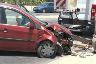 [VÍDEO] Aparatoso accidente en una rotonda del polígono industrial de Antequera al mediodía de hoy, tan solo daños materiales