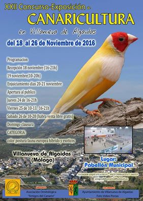 Villanueva de Algaidas celebra del 18 al 26 de noviembre el vigésimo segundo Concurso-Exposición de Canaricultura, que organiza la Asociación Ornitológica Amigos del Canario.