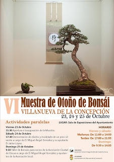 La Asociación Cultural Amigos del Bonsái Ciudad de Oscua, en colaboración con el Ayuntamiento de Villanueva de la Concepción, ha organizado para los días 23, 24 y 25 de octubre la ‘VI Muestra de Otoño de Bonsái’.