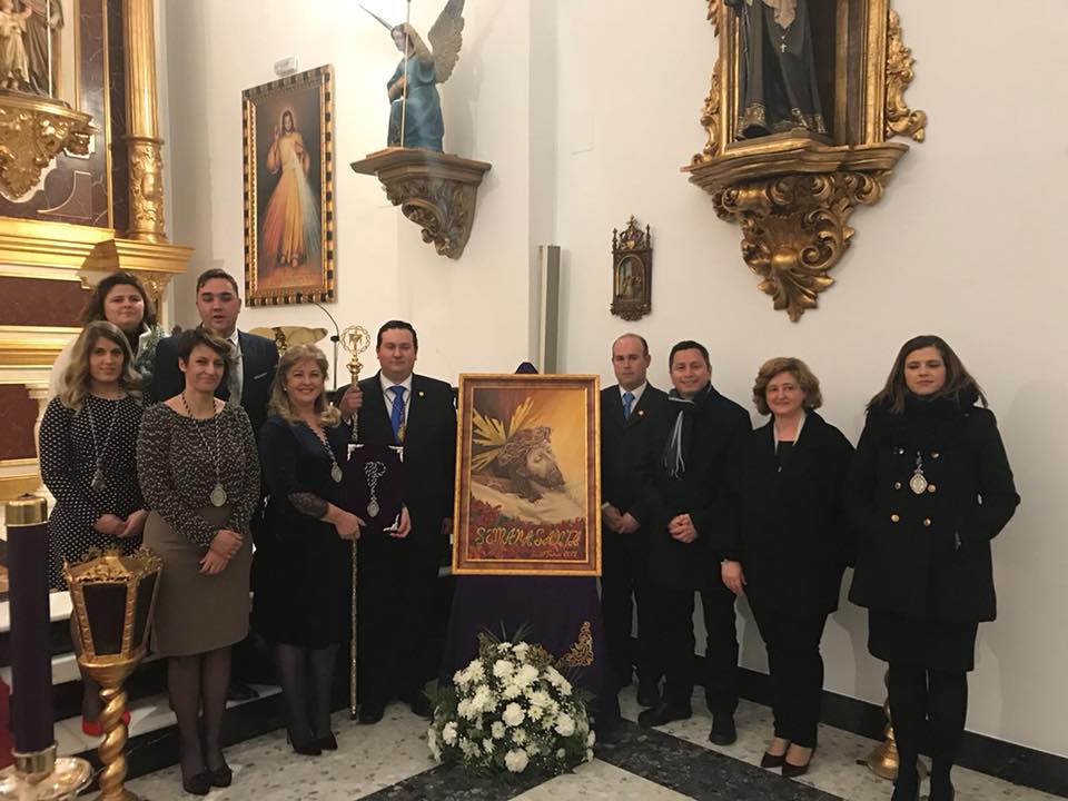 A continuación, se presentó el cartel anunciador, realizado en óleo sobre lienzo representando la figura del titular el Santísimo Cristo de la Expiración, obra de la artista local Marina Santamaría Vegas.
