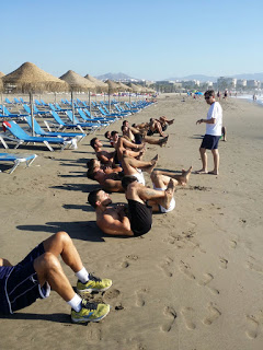 La plantilla ha comenzado con dobles sesiones de entrenamiento, fórmula que repetirá en las primeras semanas de preparación. Por la mañana, los jugadores realizan trabajo físico en la playa y, por la tarde, trabajan con balón y los distintos aspectos tácticos en las instalaciones del complejo deportivo de la Universidad de Málaga.